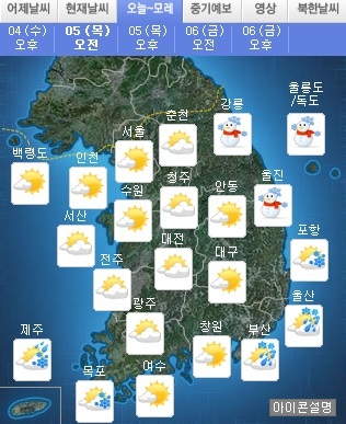 4일 기상청에 따르면 내일일 5일 아침에도 오늘 수준을 유지하며 큰 추위가 없을 전망이다.