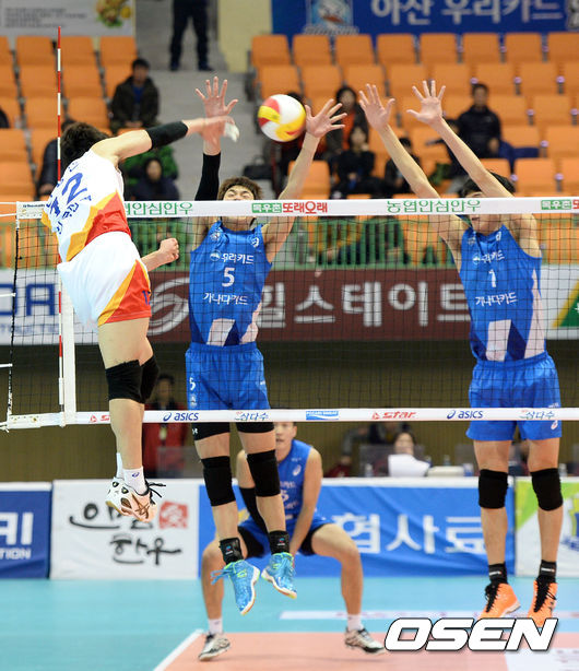 한국전력은 4일 수원실내체육관에서 열린 ‘2014-2015 NH농협 V-리그’ 남자부 우리카드와의 경기에서 세트스코어 3-0(25-18, 25-18, 25-22)로 완승했다. 승점 3점을 추가하며 창단 이래 최다 연승(6연승)을 기록한 한국전력은 승점 44점을 기록, 종전 3위였던 대한항공(승점 43점)을 밀어내고 플레이오프 직행권이 보장되는 3위에 올랐다. 반면 무기력한 경기를 펼친 우리카드는 9연패 늪에 빠지며 최하위에서 벗어나지 못했다.