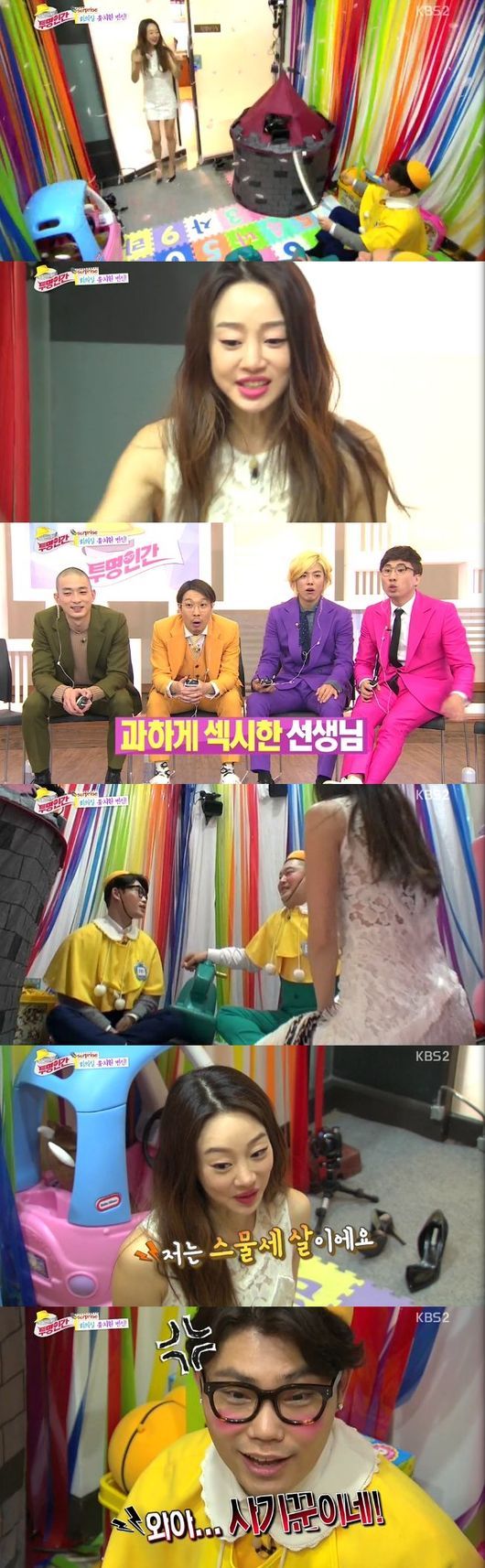 이어 최여진은 "예쁘고 섹시한 이 세상에 없는 선생님이야"라고 자신을 소개했고 김범수는 "선생님, 눈을 어디다 둬야할 지 모르겠어요"라고 말해 폭소케 했다.