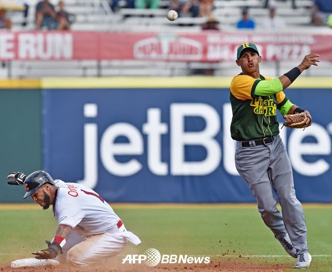 캐리비안 시리즈 도미니카 공화국전에서 뛰던 쿠바 유격수 다이네르 모레이라(우측).ⓒAFPBBNews = News1(무단전재 및 재배포 금지)