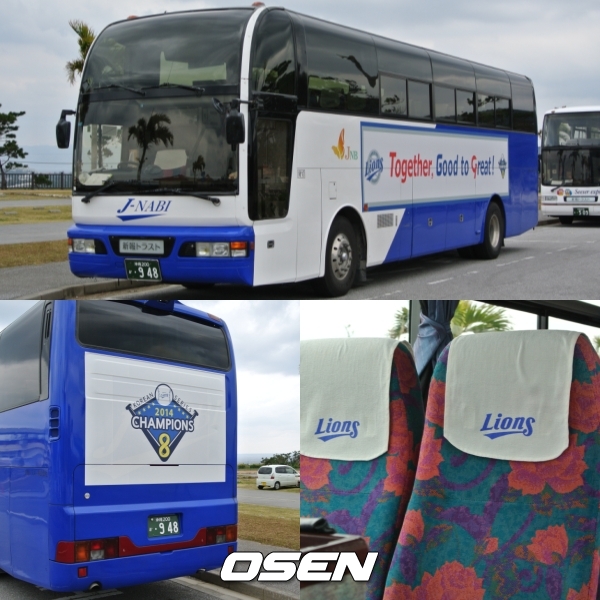 구단 측에 따르면 오키나와 온나의 리잔시파크 호텔의 협조를 통해 현지 렌트카 업체가 버스를 실제 삼성 구단 버스처럼 파란색으로 도색을 했다. 게다가 라이온즈 로고 이미지를 구해 붙였다. 인터넷을 통해 구했다고 한다.