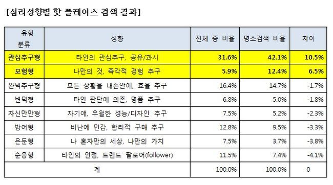 - 심리 성향에 따라 핫 플레이스 검색 결과 비율 달라져