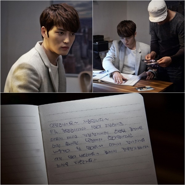 김재중은 “안녕하세요 재중입니다. 요즘 촬영하시느라 많이 피곤하시죠. 아프지 마시고 건강 챙기시면서 하셨으면 좋겠어요”라며 “어린 후배인 입장에서 힘이 많이 되고 배울 것이 참 많아요. 언제나 감사 드려요. 아직 많이 남았네요. 끝까지 잘 부탁드립니다. 최선을 다 할게요”라고 직접 펜을 들어 스태프들에 대한 진심 가득한 고마움을 전했다.