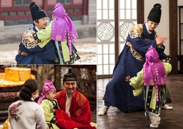 5일 공개된 사진 속에는 KBS 2TV 수목드라마 ‘왕의 얼굴’의 서인국과 이성재가 영창대군 역의 아역배우 앞에서 훈훈한 아빠 미소를 감추지 못하는 모습이 담겼다.