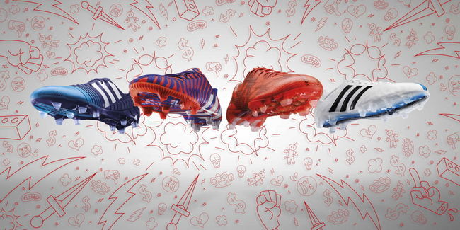 새로운 캠페인과 함께 공개된 아디다스 축구화는 총 4가지로 손흥민, 수아레스, 베일 등이 착용하는 아디제로f50, 구자철, 외질의 프레데터, 차두리, 하비 마르티네스의 나이트로차지, 그리고 홍정호, 람, 램파드가 착용하는 11pro이다.