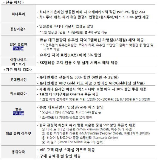 'T멤버십 글로벌'은 국내 제휴처에서 제공했던 멤버십 혜택을 해외까지 확장해, 항공·호텔 예약, 해외 유명 관광지 입장권 할인, 쇼핑 지원 등 해외 여행 전 과정에서 활용할 수 있는 혜택을 제공한다.