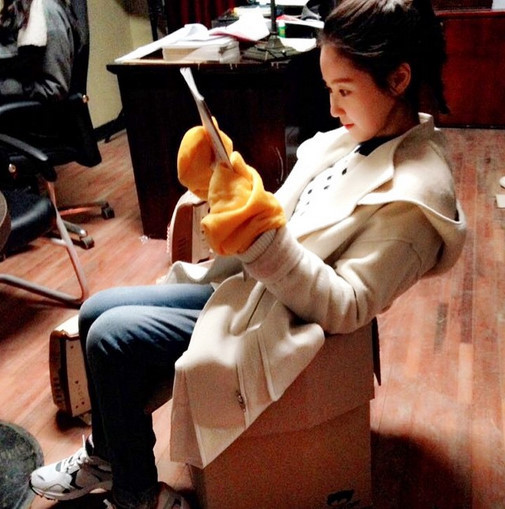 진지희는 지난 4일 오후 자신의 인스타그램을 통해 “박스 속에서 대본 공부 중. 곰돌이푸 장갑 깨알 뽀인뚜. 편하다”라는 글과 함께 사진 한 장을 게재했다.
