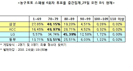 2014-15시즌 KBL 2경기 대상 농구토토 스페셜 5회차 투표율 중간집계 결과