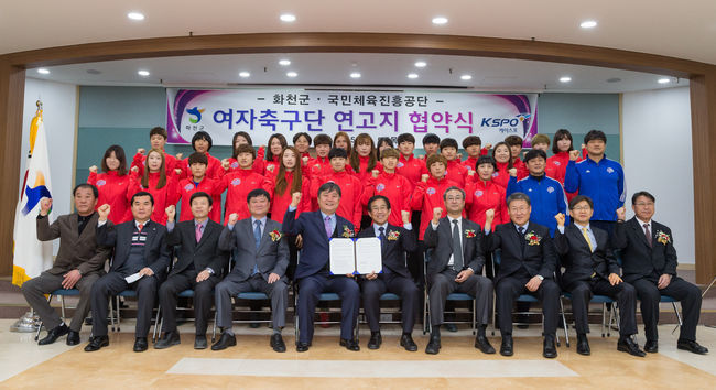 국민체육진흥공단(KSPO, 이사장 이창섭)은 5일 오전 11시 30분 화천군청 대강당에서 화천군과 KSPO 여자축구단 연고지 협약식을 갖고 국내 프로 여자축구발전과 붐 형성을 위해 함께 노력할 것을 다짐했다.