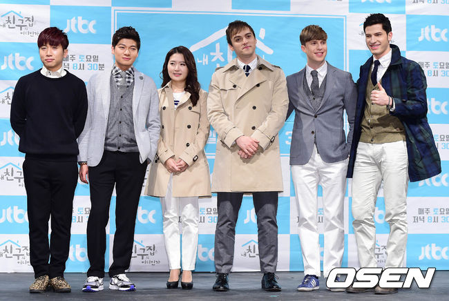 5일 오후 서울 상암동 JTBC 디지털 공연장에서 열린 JTBC '내 친구의 집은 어디인가' 제작발표회에서 유세윤(왼쪽부터), 장위안, 방현영PD, 기욤, 줄리안, 알베르토가 포토타임을 갖고 있다.