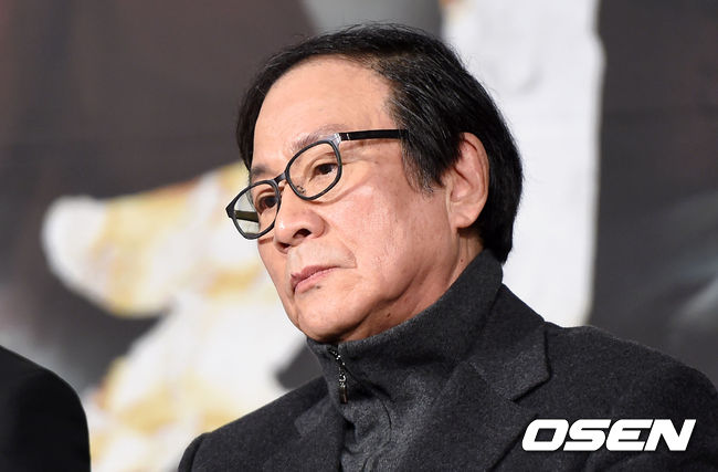 배우 임동진이 취재진의 질문을 듣고 있다.