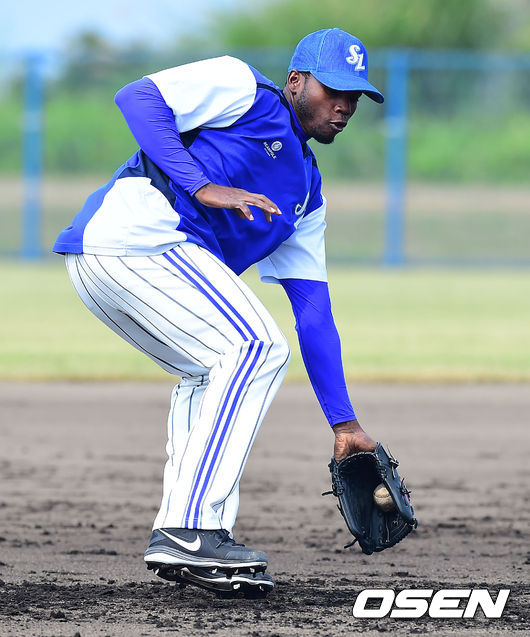 삼성 새 외국인투수 알프레도 피가로가 수비 연습을 하고 있다.