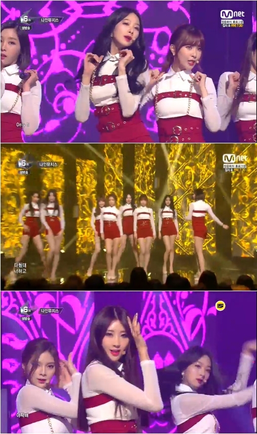 나인뮤지스는 5일 오후 방송된 케이블채널 Mnet 가요프로그램 '엠카운트다운'에서 신곡 '드라마'로 무대를 꾸몄다.