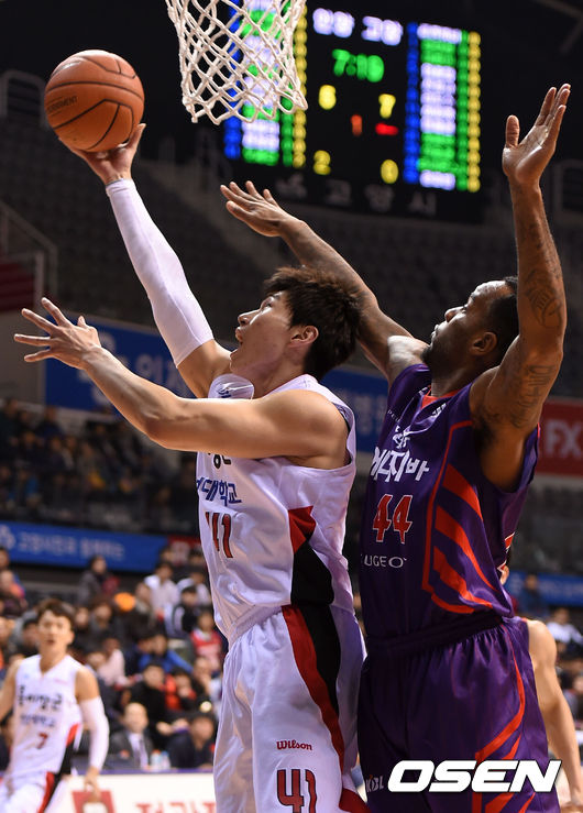 1쿼터 KGC 오세근이 레이업슛을 시도하고 있다.