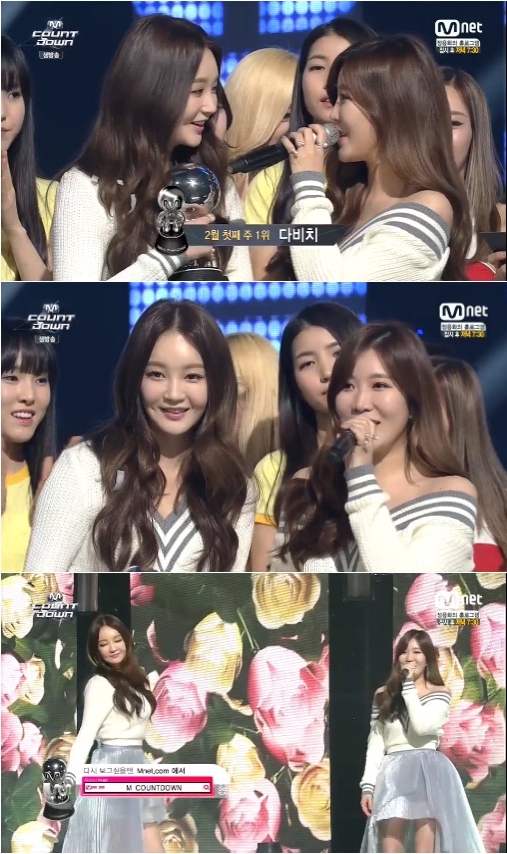 여성듀오 다비치가 '엠카운트다운' 1위에 올랐다.