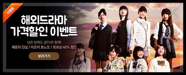 한편 곰TV는 해외드라마에 대한 시청자들의 성원을 기념해 오는 3월 20일까지 인기 해외드라마 40% 할인 이벤트를 마련했다. 2월 8일까지 ‘로보상’ ‘아오이 호노오’ ‘제로의 진실’을 할인하며, ‘타마가와 구청’ ‘내가 싫어하는 탐정’ ‘타비즈 킨짱’ ‘따귀’ ‘런던하츠’ 등을 2주간격으로 할인한다. 또한 오는 3월 20일까지 ‘장난스런 키스 시즌 1’을 30% 할인해 서비스한다.