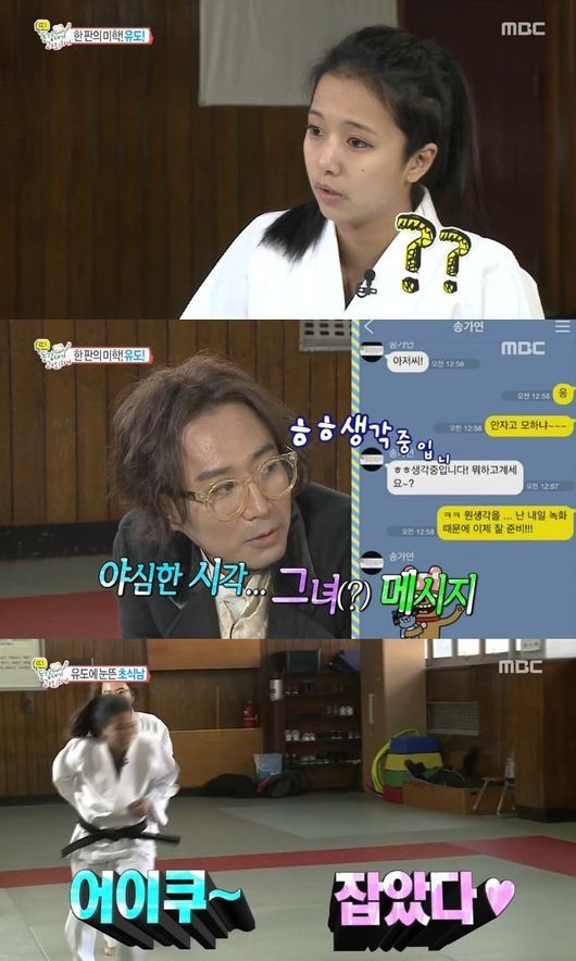 이날 정재형은 유도 배우기에 앞서 "왜 얼마전 새벽에 나에게 메시지를 보냈느냐. 혹시 나를 좋아하냐"고 저돌적인 질문을 했다.