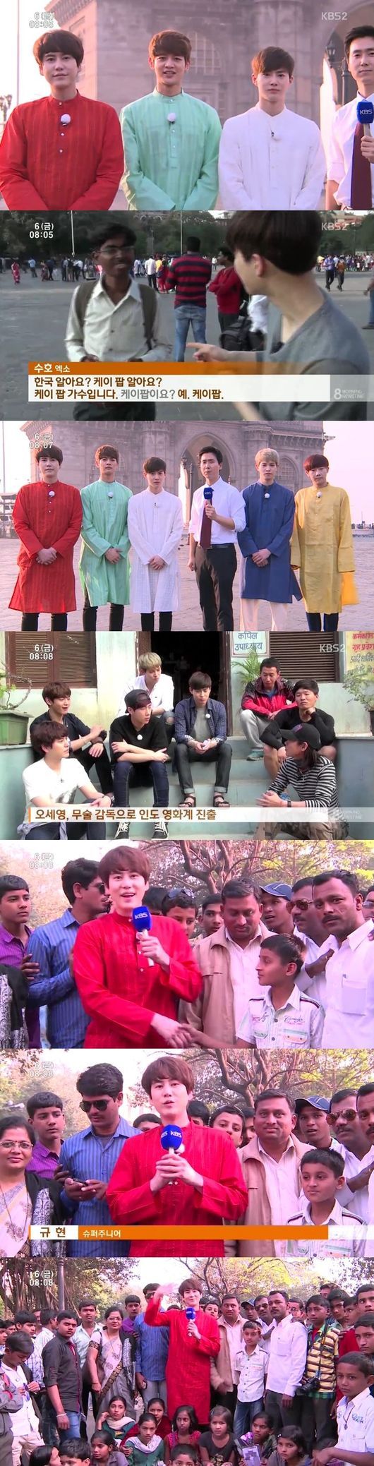 규현, 민호, 김성규, 이종현, 수호는 6일 오전 8시 방송된 '아침 뉴스 타임'에 인도에서의 K팝 현주소를 주제로 하는 뉴스의 리포터로 나서 인터뷰 및 뉴스를 전달했다.
