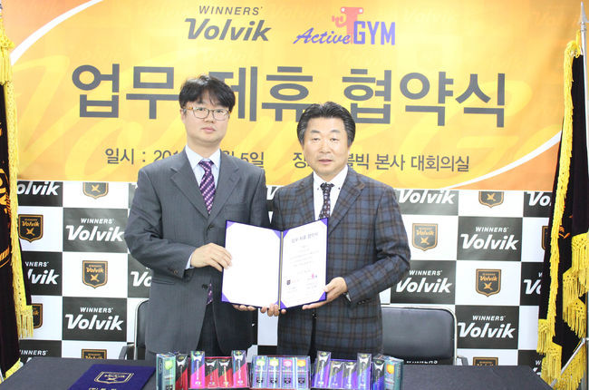 볼빅과 엑티브짐은 6일 서울 대치동 볼빅 본사에서 팀 볼빅 선수들의 경기력 향상을 위한 업무 협약을 맺었다. 이번 협약으로 볼빅 소속 선수들은 체계적인 피트니스 프로그램을 통한 경기력 향상을 기대할 수 있게 됐다.