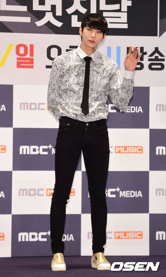 6일 오후 서울 여의도 IFC몰 CGV에서 진행된 MBC 뮤직의 여행 리얼리티 '빅스의 어느 멋진 날' 제작발표회에서 레오가 포토타임을 하고 있다.