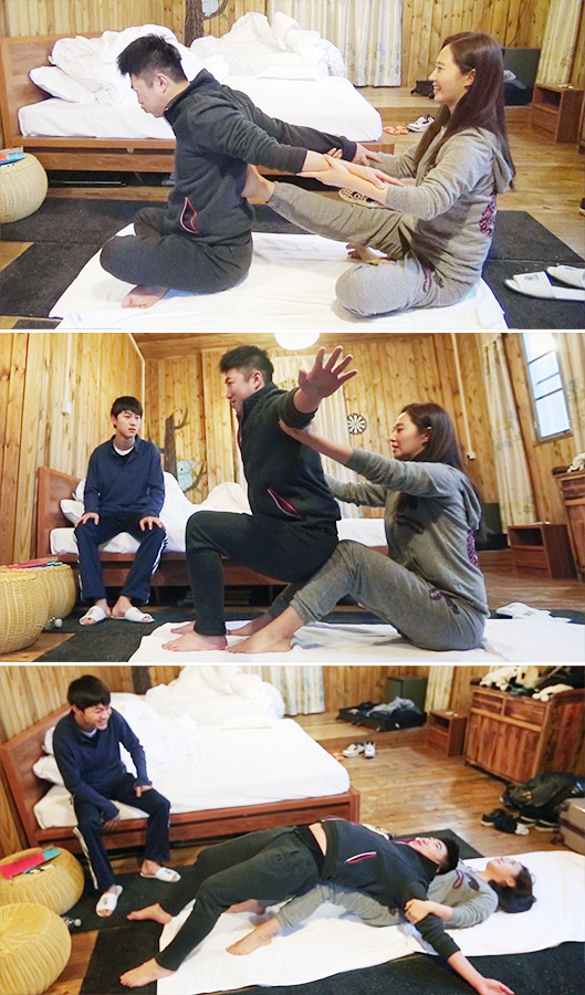 공개된 사진 속 유리는 요가 전문가를 방불케 하는 고난도 동작으로 시선을 집중 시키고 있다. 또한, 유리와의 커플 요가에 설레던 장동민은 강도를 더해가는 과격 요가에 혼신의 힘을 다하는 표정으로 웃음을 자아냈다.