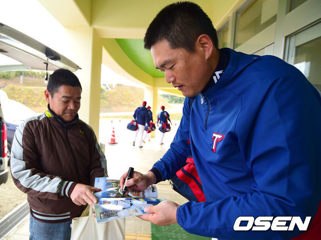 KIA 최희섭이 일본 팬에게 사인을 하고 있다.