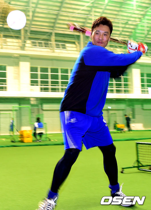 삼성 이승엽이 야간 훈련에 참가해 타격 연습을 하고 있다.