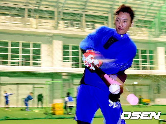 야간 훈련하는 이승엽,'멈추지 않는다'