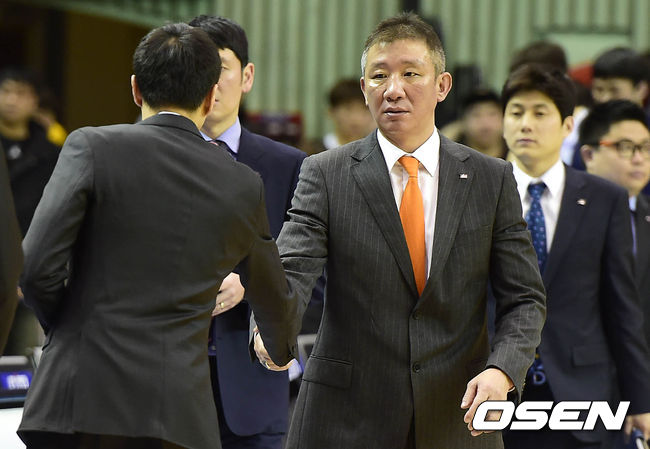 경기종료후 허재 감독과 이상민 감독이 악수를 나누고 있다.
