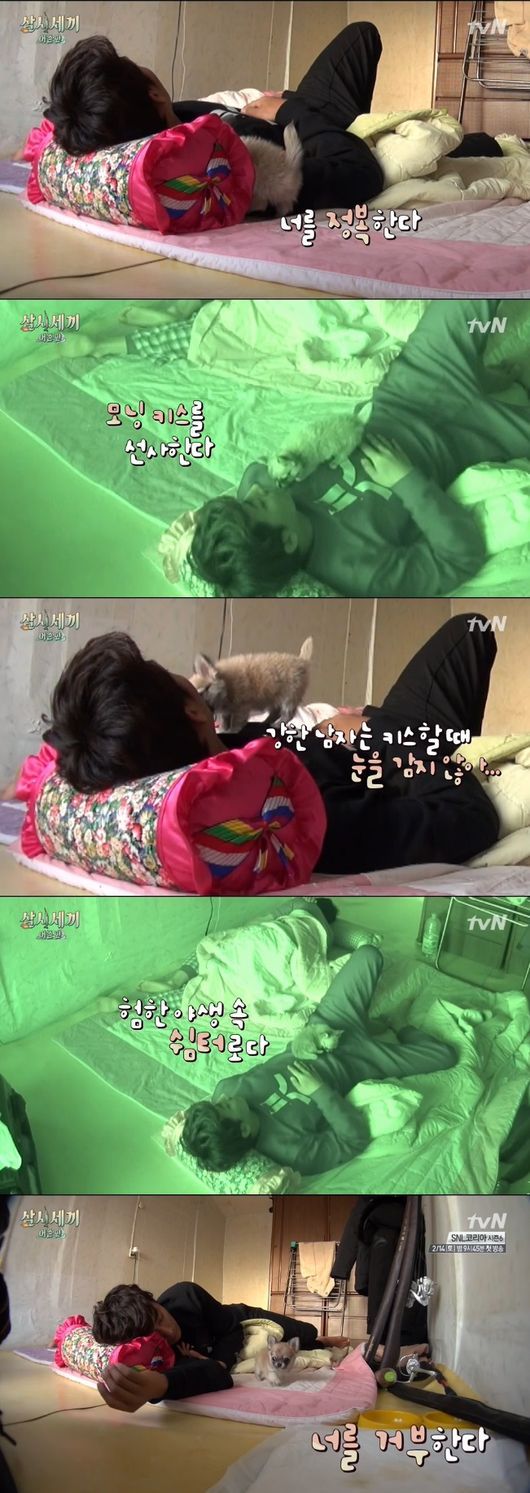 '삼시세끼'의 산체가 손호준에게 모닝키스를 했다.