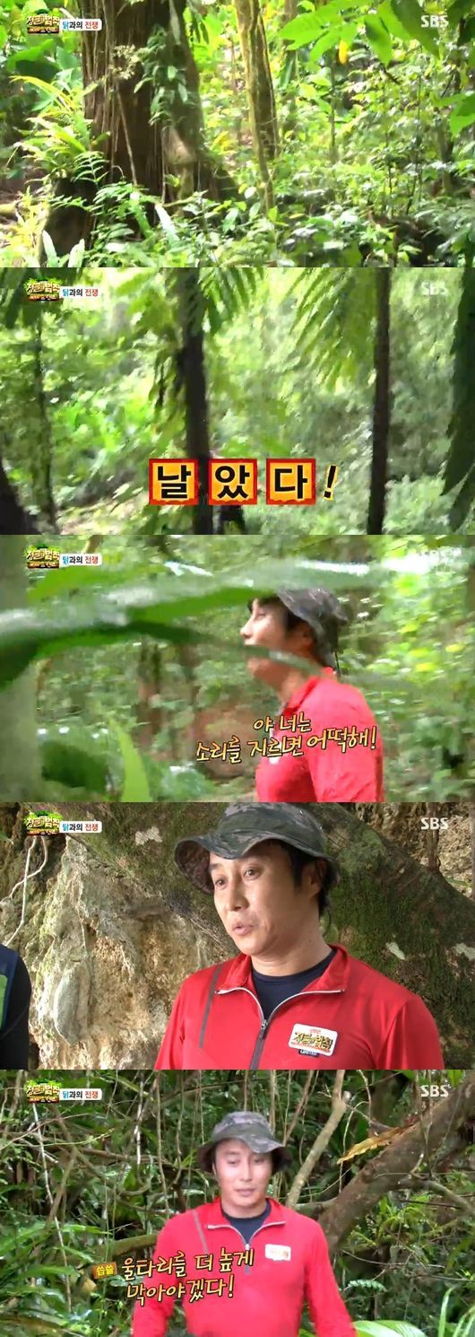 한 마리의 닭을 발견한 후 출연자들이 합세했다. 김병만을 비롯한 멤버들은 닭을 잡기 위해 포위망을 좁혔다. 허나 반전이 있었다. 닭이 마치 새처럼 훨훨 날아서 도망간 것. 이 모습을 본 육중완은 “닭처럼 생각하면 안 된다. 새라고 생각하고 잡아야겠다”라고 혀를 내둘렀다. 김병만 역시 날아다니는 닭에 의욕이 감퇴돼 크게 당황하고 충격을 받은 모습을 보였다.