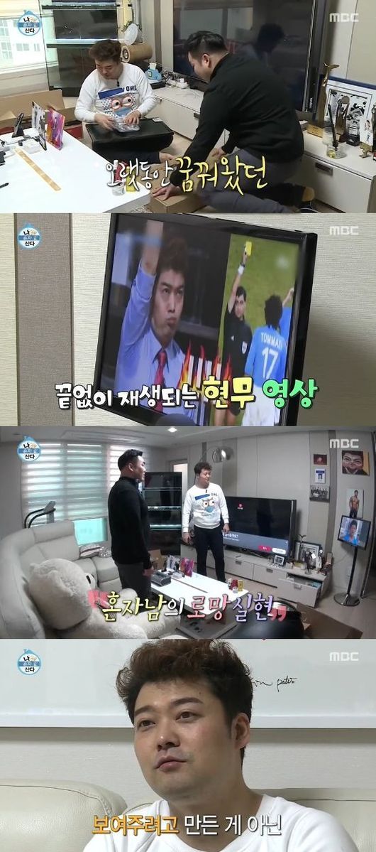 설치 이후 풍경은 다소 독특했다. 거실 한 구석에서는 전현무가 출연한 방송들이 끊임없이 재생됐고, 다른 한켠에서는 그동안 그가 수상한 트로피들이 정성스레 놓여있었다.