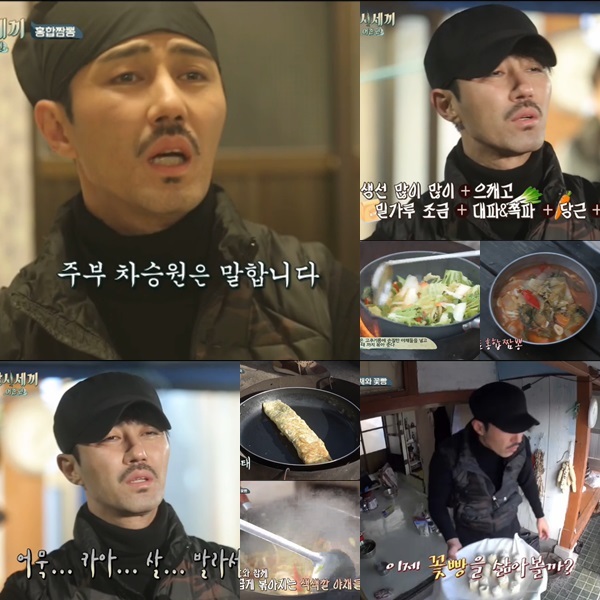 차승원은 배추를 비롯해 당근, 파, 시금치, 적고추 등을 다듬고는 본격적인 요리를 시작했다. 마늘을 고추기름에 볶고 야채들도 볶았다. 이를 냄비에 넣고 물과 양념장을 넣어 끓이고는 금방 완성했다. ‘차셰프’답게 요리철학도 있었다. 차승원은 “요리에서 중요한 건 스피드다. 음식은 기다리면 안 된다. 음식은 때에 맞춰 먹어야 한다. 아침, 점심, 저녁 그때 맞춰서 가장 빠른 시간에 최상의 음식을 내놓는 것이 중요하다”고 말했다.