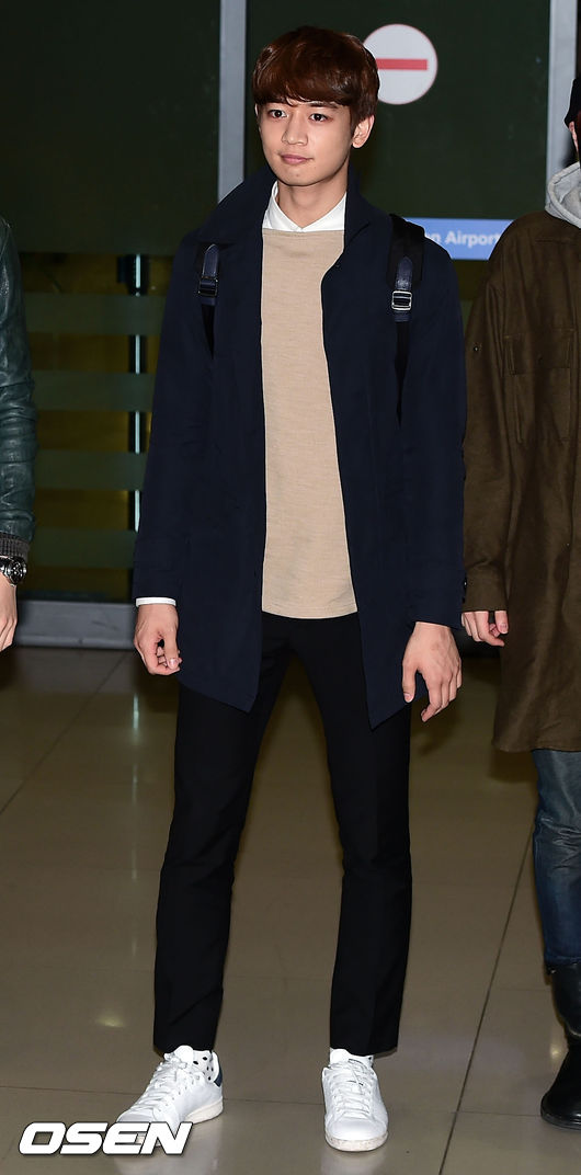 샤이니 민호, 엑소 수호, 씨엔블루 종현, 인피니트 성규가 입국장에 들어서고 있다.