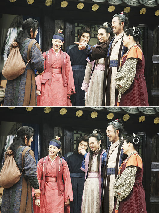 사진 속 배우들은 한 명도 빠짐없이 유쾌한 웃음을 짓고 있어 훈훈한 촬영장 분위기를 그대로 전달하고 있다. 보조개가 돋보이는 미소 여신 오연서(신율 역)부터 머쓱한 웃음을 보이는 장혁(왕소 역), 장혁을 보며 끝내 웃음을 참지 못하고 폭소하는 허정민(양규달 역)과 장혁을 보며 얼굴 가득 웃음을 띈 안길강(강명 역), 극 중에서 장혁에게 한 번도 웃음을 보이지 않았던 김선영(백묘 역)과 무뚝뚝하고 표정변화가 없는 정우식(경 역)까지 모두 박장대소 하고 있는 모습은 훈훈한 촬영 분위기를 짐작케 한다.