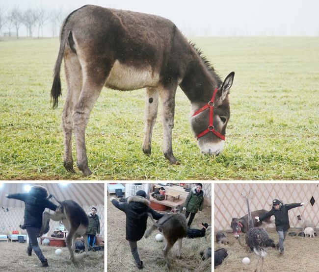 당나귀 산쵸가 윤도현에게 뒷발차기를 감행, 그를 아연실색하게 만들었다.