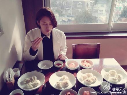 공개된 사진에서 김희철은 흰색과 검정색으로 된 옷을 입고있다. 또한 한 상 가득있는 만두를 먹으며 행복한 표정을 짓고 있어 눈길을 끈다.