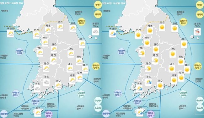 7일 기상청에 따르면 오후 3시 기준 전국이 대체로 흐린 가운데, 내륙 일부 지역에 박무가 낀 곳이 있다.