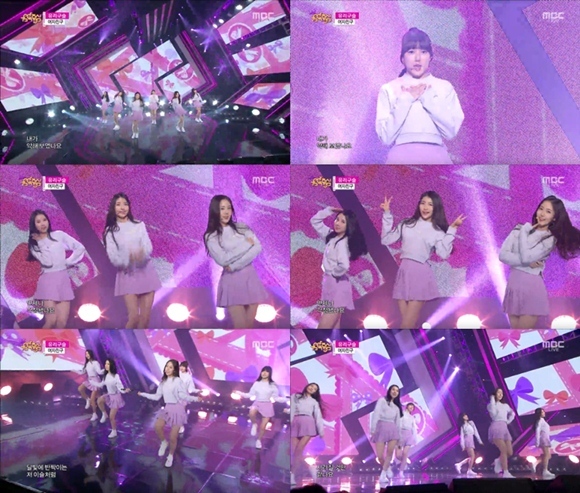 여자친구는 7일 오후 방송된 MBC '쇼! 음악중심'에 출연해 데뷔곡 '유리구슬'의 무대를 꾸몄다.
