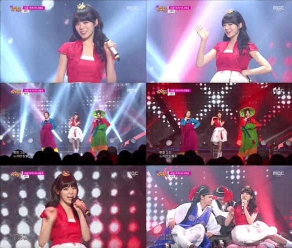 이날 리지는 특유의 통통 튀는 매력과 흥겨운 트로트 멜로디로 개성 강한 무대를 완성했다. 한복을 입고 등장한 댄서들과 한 편의 뮤지컬 같은 무대를 꾸며 시선을 끌었다.