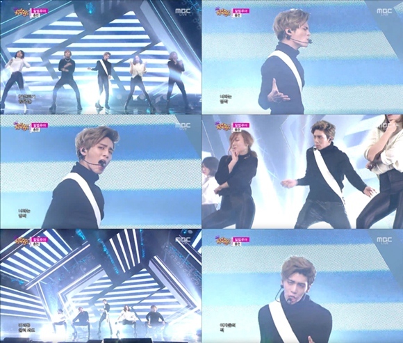 종현은 7일 오후 방송된 MBC '쇼! 음악중심'에 출연해 솔로곡 '할렐루야'의 무대를 꾸몄다.