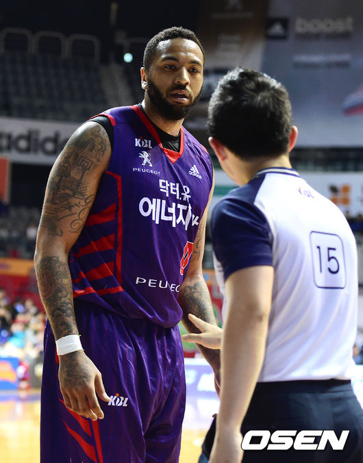 2쿼터 종료, 오리온스 길렌워터가 심판 판정에 강력하게 항의하고 있다.