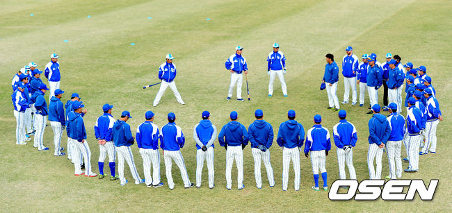 삼성 선수단과 코칭스태프가 훈련 시작을 앞두고 미팅을 갖고 있다.