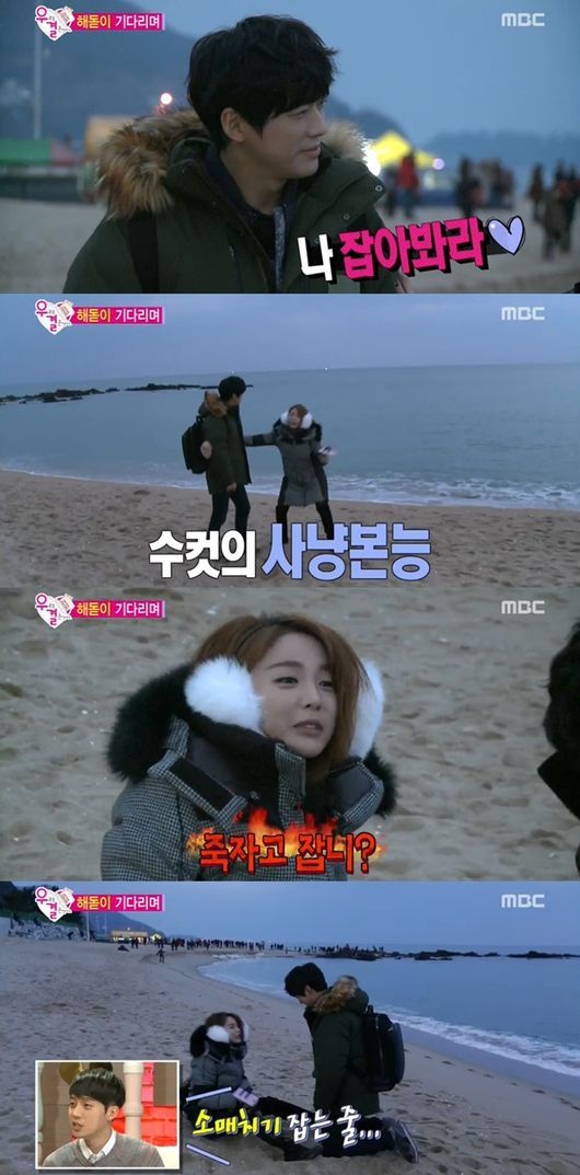 남궁민과 홍진영은 7일 오후 방송된 MBC ‘우리 결혼했어요 시즌4(이하 ’우결‘)’에서 정동진 모래사장에서 ‘나 잡아봐라’를 해 눈길을 끌었다.