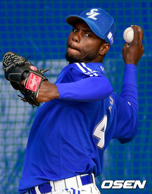삼성 새 외국인투수 알프레도 피가로가 불펜 투구를 하고 있다.