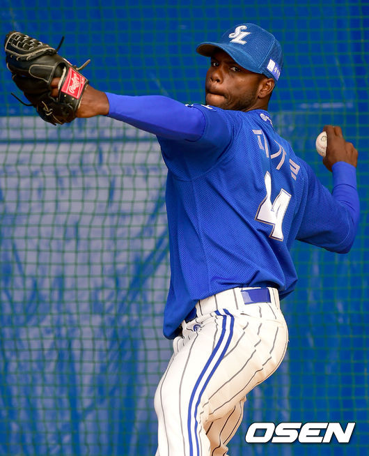 삼성 새 외국인투수 알프레도 피가로가 불펜 투구를 하고 있다.
