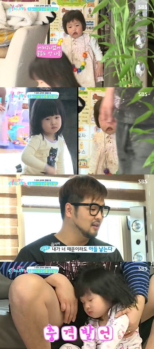 김태우는 어쩔 줄 몰라했지만 이 자매는 여전히 티격태격했다. 결국 김태우는 “너 때문이라도 내가 아들을 낳을 거야”라고 소율이의 버릇을 고쳐주기 위해 농담을 했다.