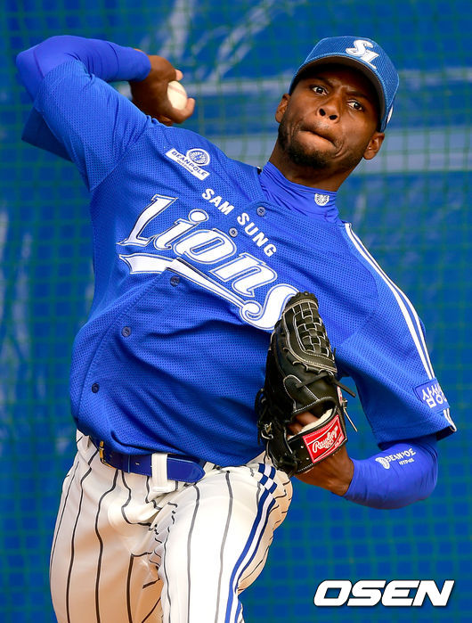 삼성 새 외국인투수 알프레도 피가로가 불펜 투구를 하고 있다.