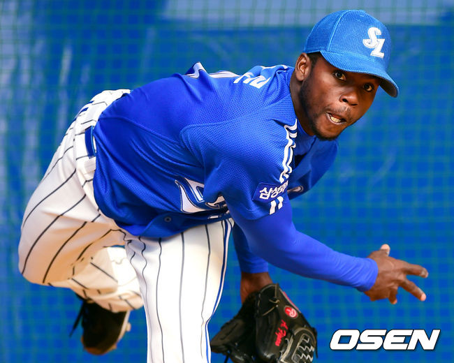 삼성 새 외국인투수 알프레도 피가로가 불펜 투구를 하고 있다.