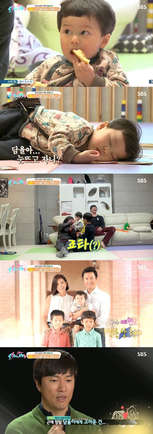 담율이는 이날 딸기잼을 먹으면서 갑자기 잠이 들었다. 이 모습을 본 김정민과 루미코 부부는 귀여워서 어쩔 줄 몰라했다. 특히 김정민은 담율이와 같은 자세로 누운 후 아내에게 사진을 찍어달라고 부탁했다. 붕어빵 아빠와 아들은 그렇게 함께 추억을 공유했다.